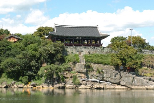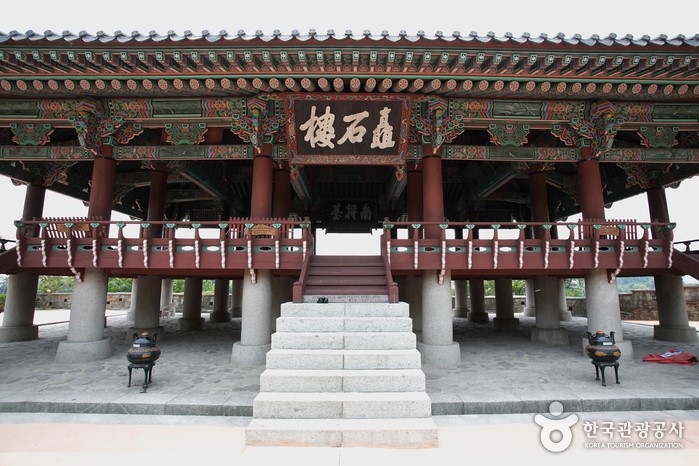 남강(南江)의 바위 벼랑 위에 장엄하게 자리잡고 있어 영남(嶺南) 제일의 아름다운 누각이다.