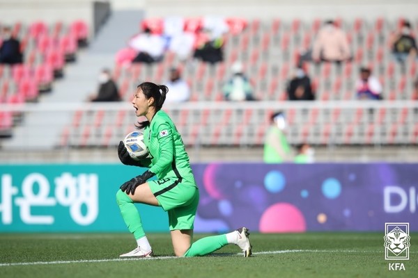 김정미 골키퍼의 선방이 한국 골문을 지켰다.