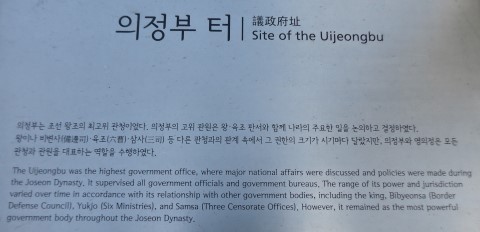 조선시대 경복궁의 정문인 광화문을 나서면 바로 왼쪽에 국가 정사를 총괄하던 의정부(議政府)가 있었다. 현 광화문광장~세종대로는 의정부와 함께 양쪽에 이·호·예·병·형·공의 육조와 여러 관청이 자리해 ‘육조거리’라 불렸다. 옛 육조거리에 있던 관청 중 유일하게 흔적이 남아있는 ‘의정부’ 터(의정부지·議政府址)가 국가지정 문화재가 된다.
