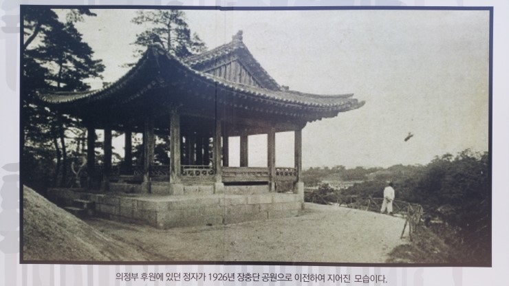 의정부 후원에 있었던 정자: 1926년 장충단공원으로 이전하여 지어진 모습,