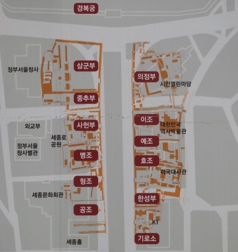 정부서울청사는 삼군부 터에 건설되었으며, 시민열린마당은 의정부 터에 조성되었다.