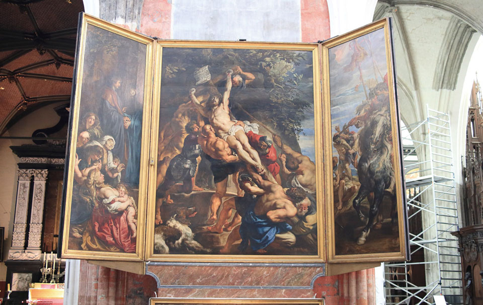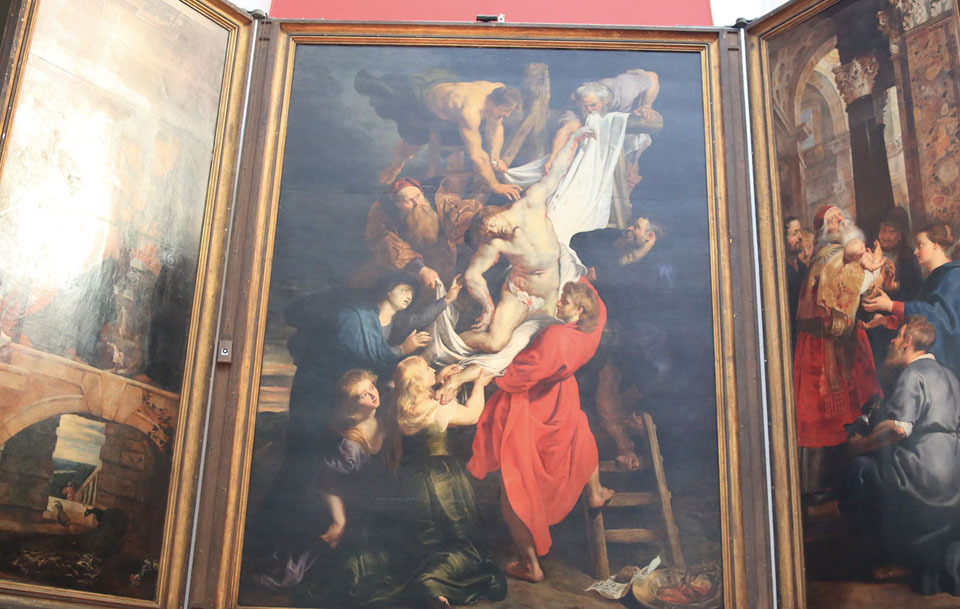 성당에는 유명한 화가 루벤스가 그린 〈십자가에 들어 올려지는 예수〉와 〈십자가에서 내려오는 예수〉라는 그림이 걸려 있는데 천으로 덮여 있어 돈을 지불해야만 볼 수 있다. 그림을 보고자하는 넬로의 강한 열망이 드러나 있다.
